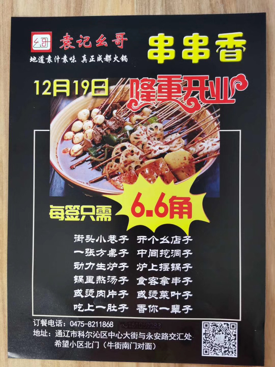 《袁记幺哥串串香》通辽市筹备开业
